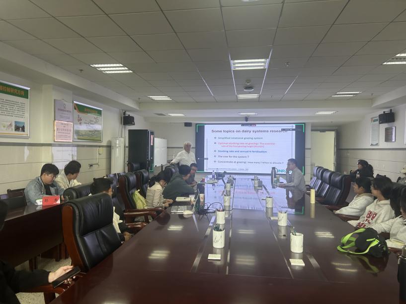 2025年10月11日下午3:00,草业学院举办了以“Grass based dairy and beef from dairy systems”和“法国反刍动物饲养标准及研究趋势”为主题的学术报告会。草业学院青年教师朱爱民主持会议。本次报告会采用线上和线下同时进行的方式,吸引了学院的年轻教师、本科生和研究生积极参与。