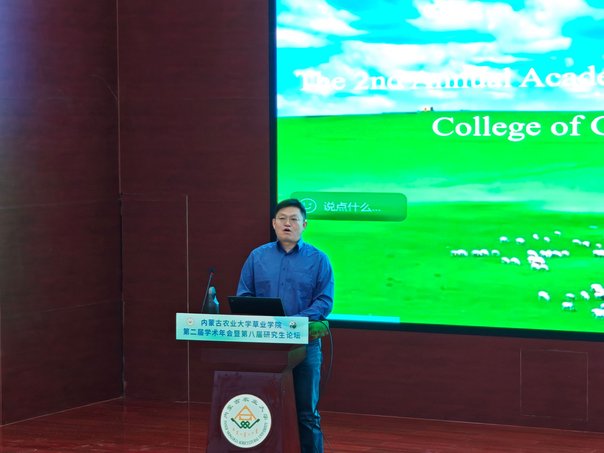 2026年1月4日上午,草业学院第二届学术年会暨第八届研究生论坛在生科楼二楼报告厅开幕。开幕式由学院党委书记格根图主持。内蒙古农业大学副校长塔娜、中国农业科学院草原研究所副所长马晓昀、自治区林业和草原局草原管理处处长姚蒙、自治区农牧厅奶业处处长王红柳,以及刘德福、云锦凤老先生、学院师生代表共同出席。