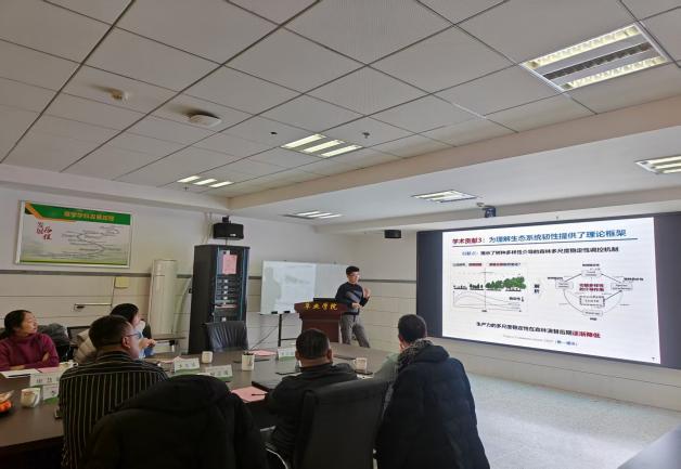 1月24日上午中山大学两位博士后刘碧颖、谭天元分别就养分添加和补光对高寒草地植物群落多样性的影响及植物性状变异与生态系统属性做了详细的报告。草业学院教师李治国、王静、侯东杰、武倩、李艳龙、朱爱民分别介绍了自己的研究方向。