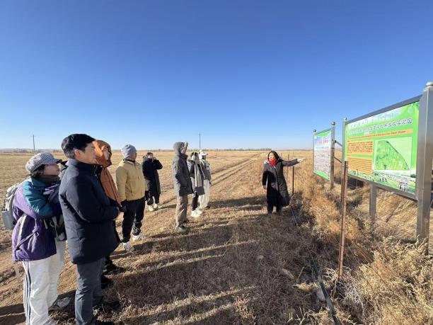 为加强校际合作,推动学科发展,1月23日-24日学院举办了为期两天的草地生态系统可持续发展研讨会。1月23日上午野外科学考察,草业学院赵萌莉教授带领中山大学李添明一行参观了内蒙古农牧业科学院实验基地短花针茅荒漠草原长期放牧试验平台、长期增温平台、增减雨试验平台、草地风蚀平台等。