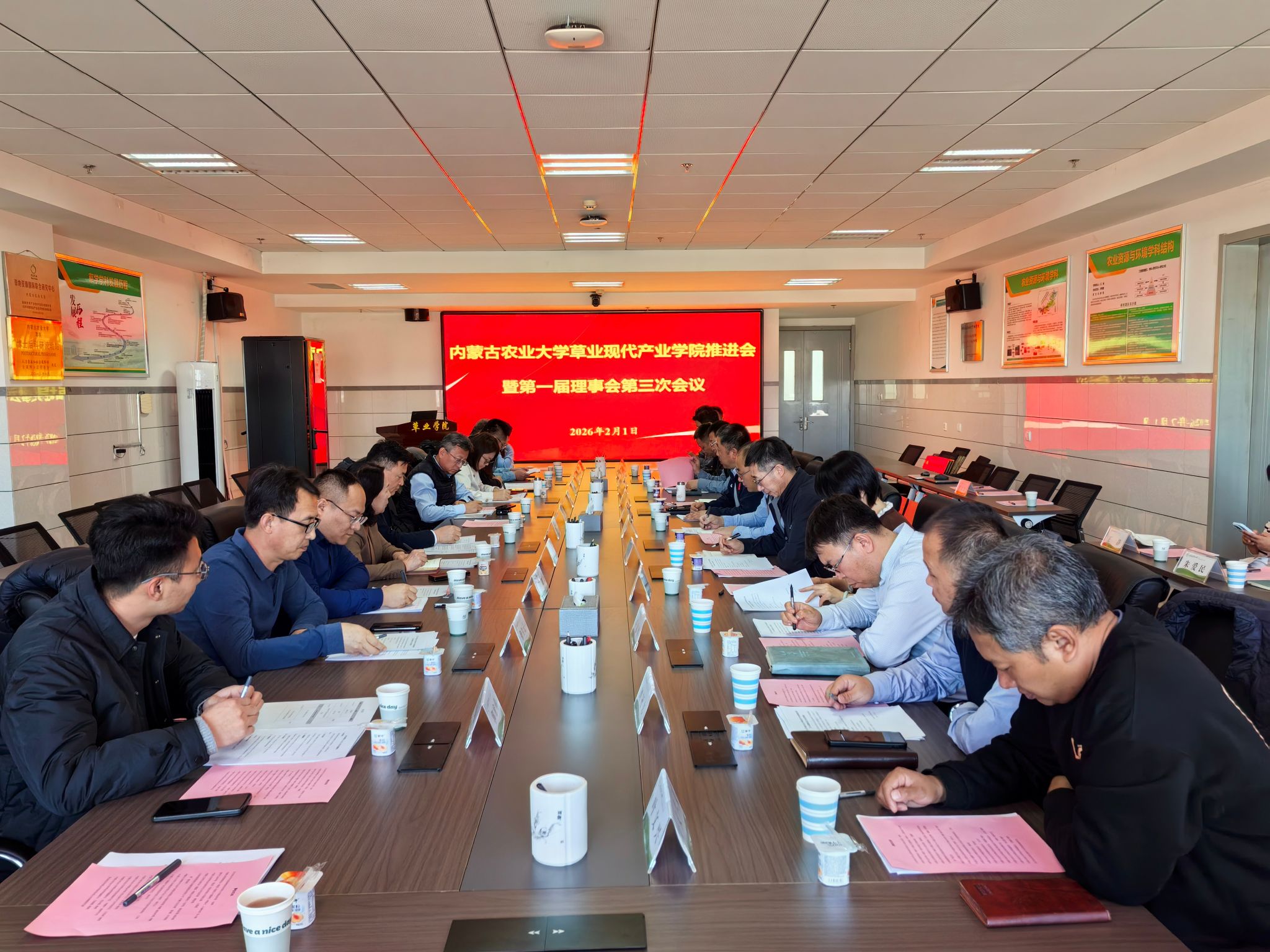 为深入落实《内蒙古自治区本科高校现代产业学院建设实施方案》,进一步推进草业现代产业学院建设工作,2月1日,草业学院于生科楼837会议室召开了草业现代产业学院推进会暨第一届理事会第三次会议。