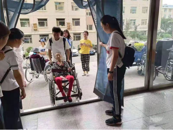 实践第二天队员们前往山水宜居老年公寓做为期一天的志愿者服务。首先,实践队员们对老人的住所进行了大扫除,打扫了老人的床头柜、对日常用品进行了合理的摆放。随后,相互照应配合,将坐轮椅以及行动缓慢的老人全部扶到楼下晒太阳。实践队员们陪着老人们聊天,聆听老人讲年轻时候的故事。
