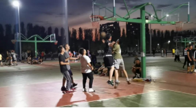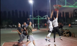 篮球进筐的声音,球鞋摩擦球场的声音,是这个燥热的天气中最解暑的声音。球员们在球场上大展风采,一个个利落的动作让人目不暇接。