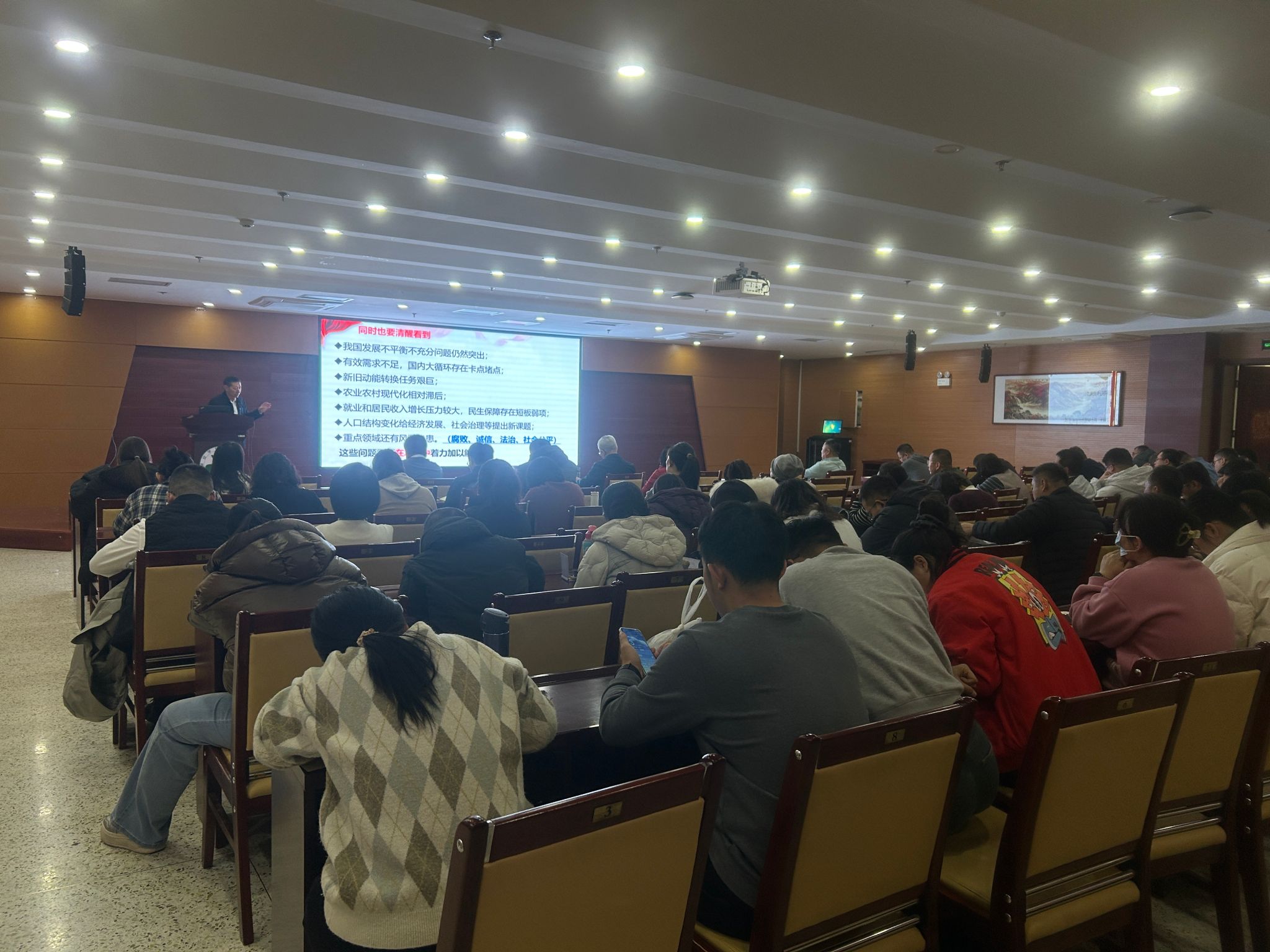 12月11日下午,学院在生科楼1244会议室召开全院大会,会议由学院党委书记赵云虎主持,特别邀请了包庆丰书记作关于学习贯彻党的二十届四中全会精神的专题报告,全体教职工及学生代表参加。