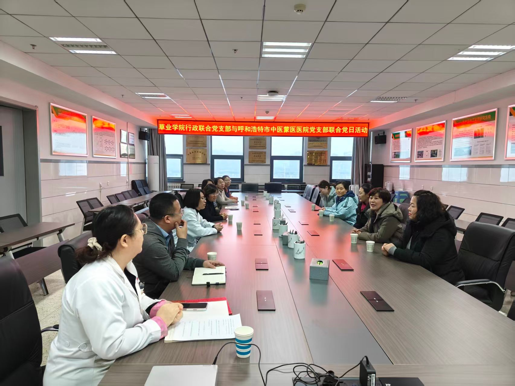 为深入践行党员责任,传递党的温暖关怀,2025年12月16日16:00,我院行政联合党支部与呼和浩特中医蒙医医院第二、第三和第八支部联合开展 “感党恩、听党话、跟党走 —— 我为群众办实事” 系列主题党日活动。呼和浩特中医蒙医医院向我院草学重点实验室无偿捐赠 75% 酒精 20 箱,为实验室科研工作安全开展与师生健康防护提供坚实保障。我院党委刘漫中副书记、张志强副院长、学院实验室管理中心高翠萍、张东教授等人出席了活动现场,本次活动由行政联合党支部书记高霞老师主持。