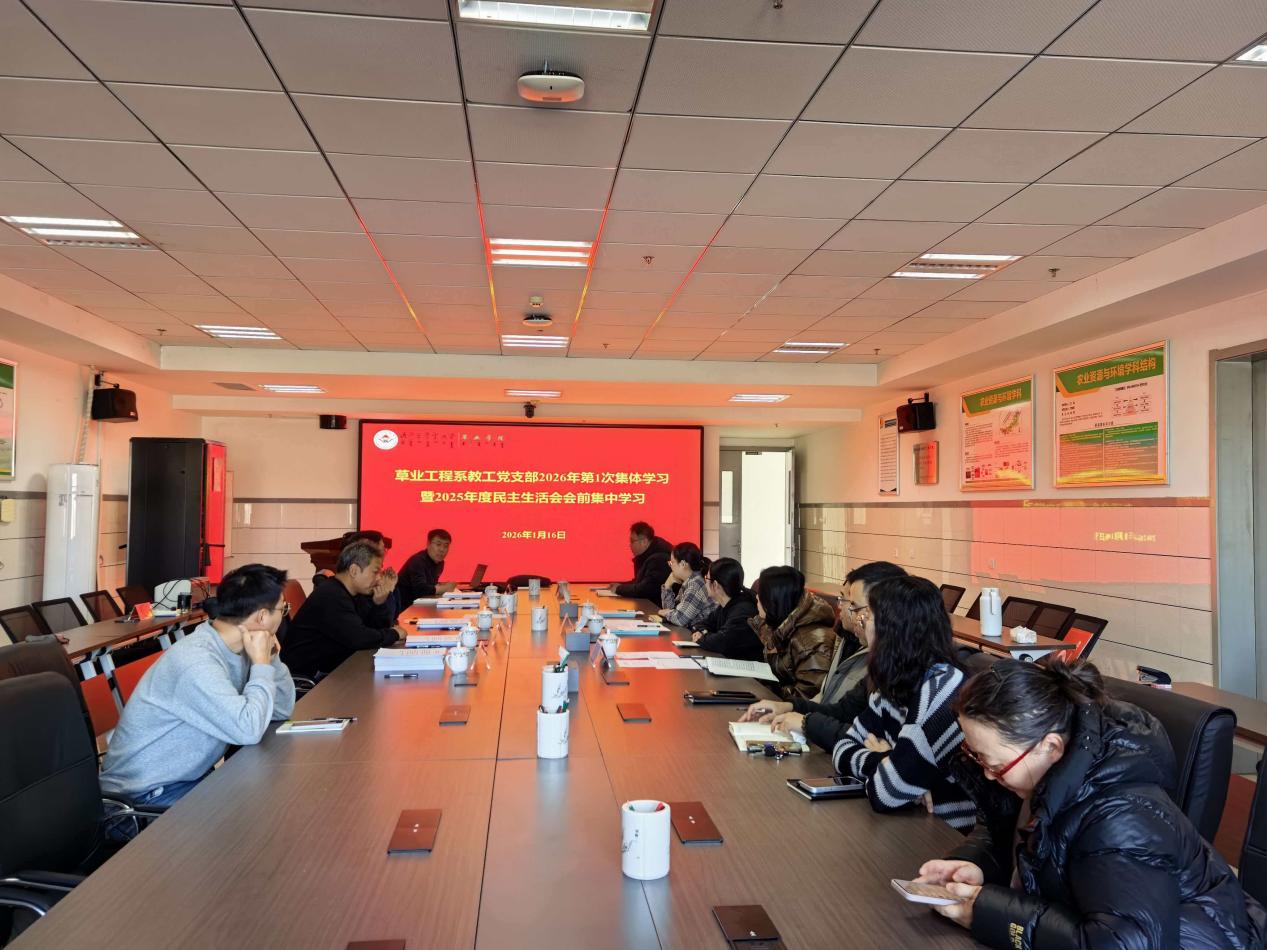 2026年1月16日,草业工程系教工党支部在生科楼837会议室组织召开2026年第一次集体学习会暨2025年度民主生活会会前集中学习。会议由支部书记王志军同志主持,全体党员参加。