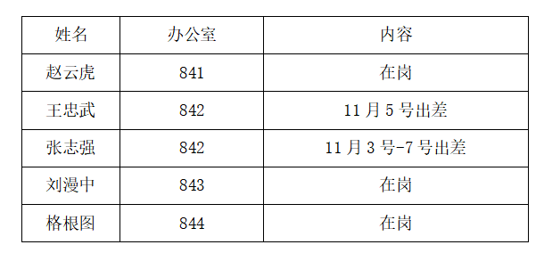 2025年11月3日—11月7日院领导去向告知