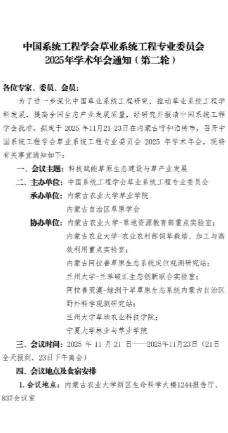 【通知】中国系统工程学会草业系统工程专业委员会2025年学术年会通知(第二轮)
