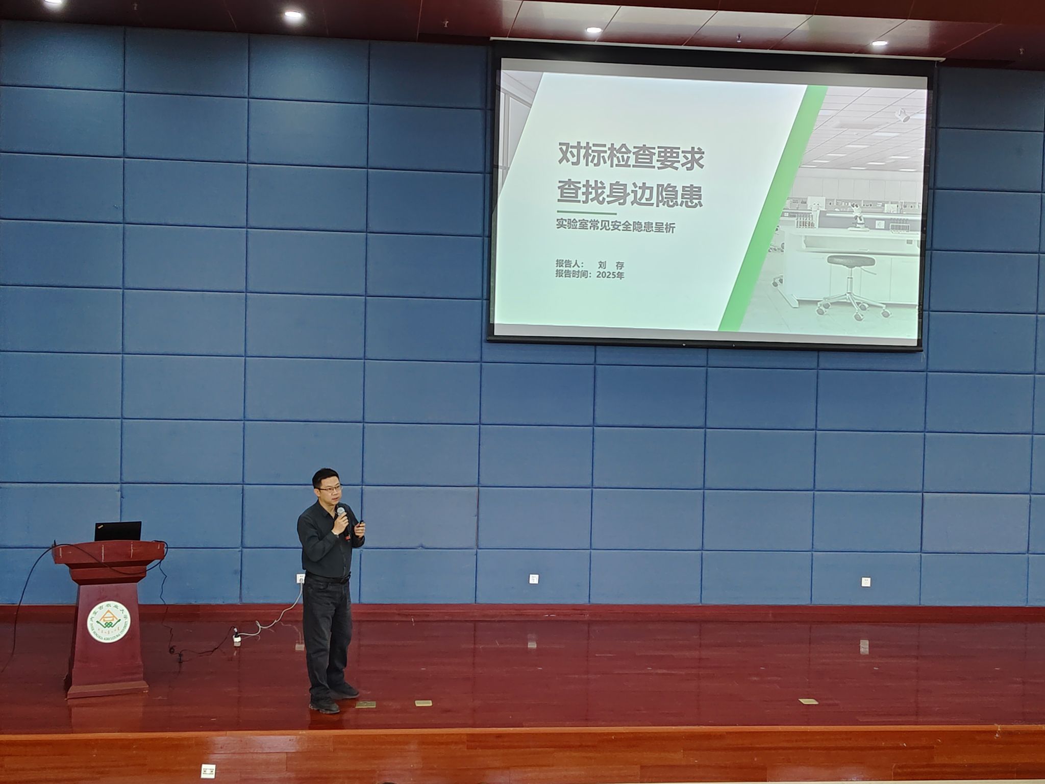 在上午的专题讲座中,刘存老师以“对标检查要求,查找身边隐患”为主题,围绕高校实验室常见安全隐患,结合真实事故案例,系统讲解了危险化学品、易燃易爆品、气瓶气体、加热设备、电气设备、生物安全、废弃物处置等12大场景的安全管理要点,并重点解读了教育部《高等学校实验室安全检查项目表》的核心条款。他强调,实验室安全是法律底线,更是师生生命健康的最后防线,任何“习以为常”的违规操作都可能带来不可逆的严重后果。