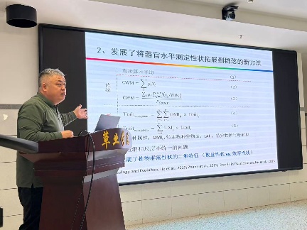 报告中,何念鹏教授以植物群落性状为核心切入点,系统且深入地阐述了传统植物性状与宏观生态过程之间的内在关联机制。何教授详细分享了团队在植物性状领域的系列研究成果:不仅成功构建了中国生态系统功能性状数据库(China_Traits),更创新性地提出并发展了植物群落性状、生态系统性状、植物性状网络等核心概念体系,为群落生态学研究提供了兼具理论价值与实践意义的新技术路径。何教授强调,植物群落性状可作为生态系统生产力预测的关键指标,这一前沿观点清晰展现了生态系统生产力研究领域的新方向与新视角,让在场师生深受启发。