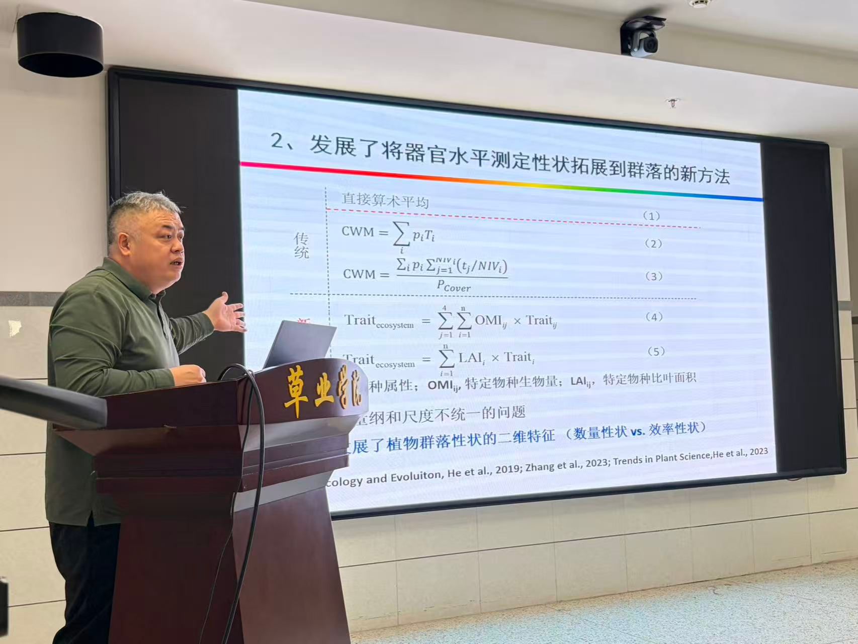 2026年1月10日下午,东北林业大学生态学院何念鹏教授应邀来我院进行学术交流,并作题为《植物群落性状:传统性状于宏观生态的桥梁》的学术报告。本次学术报告会由任海燕教授主持,草业学院院长王忠武教授、学院青年教师及研究生代表参会,现场师生与何念鹏教授围绕报告核心内容及相关研究方向展开了深入交流探讨。
