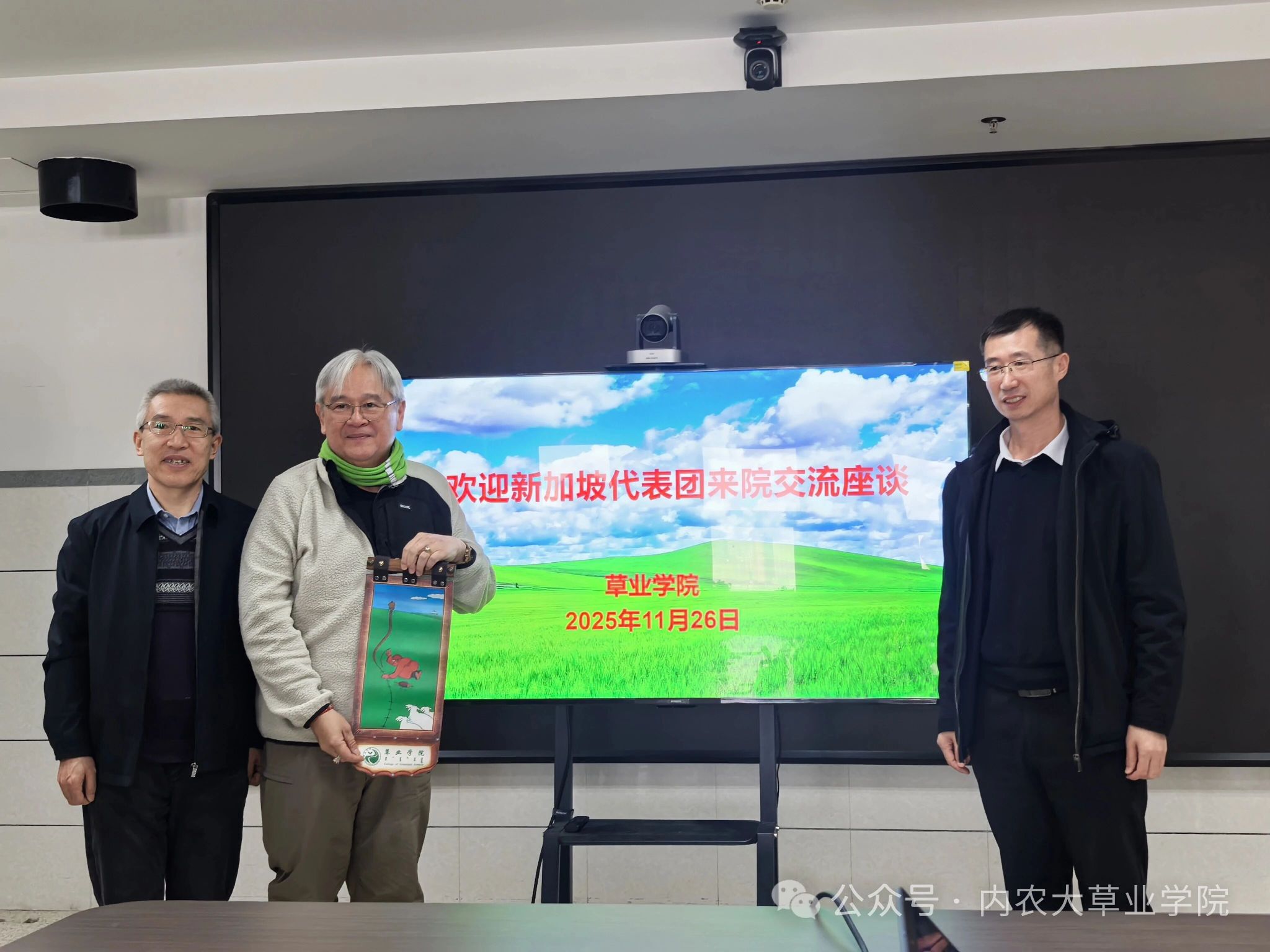 2025年11月26日上午,新加坡理工大学机构审查委员会董事及Metazone创始人Jevan Tan、联合创始人June Tan,以及满世集团印尼泰姆煤矿董事傅懿等一行人访问我院。学院党委书记赵云虎主持会议,草业学院院长王忠武、国际教育学院副院长高讷、草业学院教授赵萌莉、副教授冯超参加会议。 院长王忠武系统介绍了草业学院自1958年建院以来的专业建设、师资队伍、实验教学及国际合作等工作情况。他指出,希望双方立足优势学科,深化项目合作,...